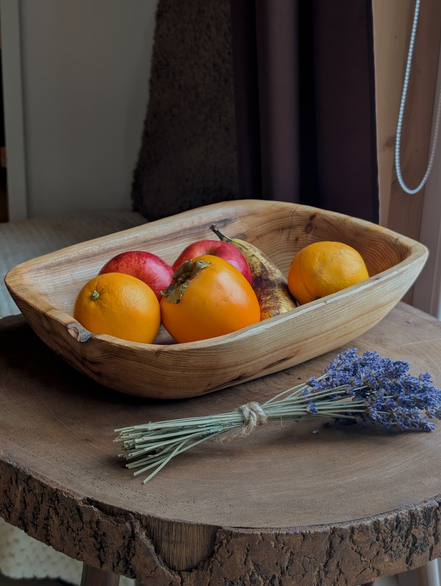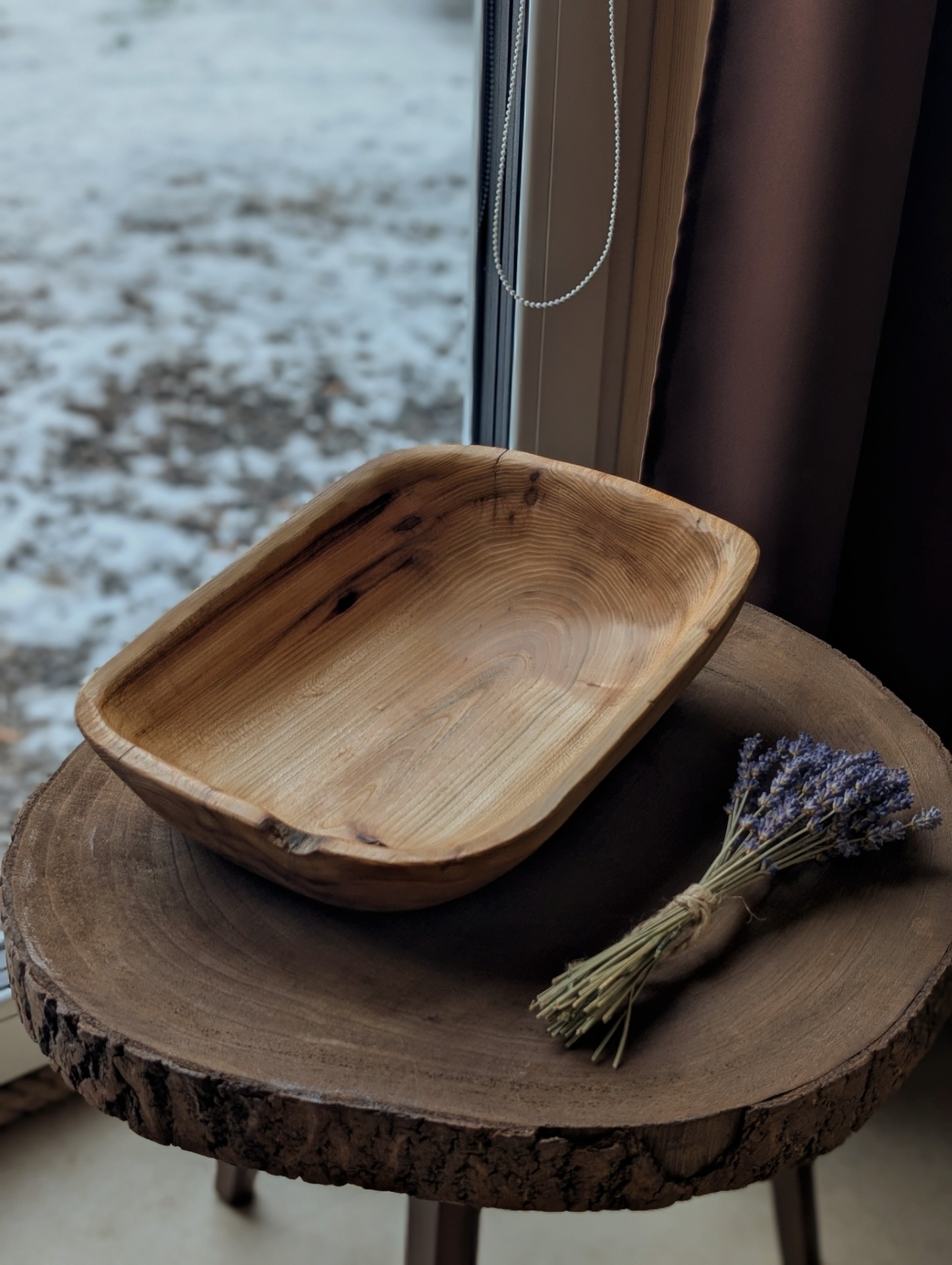 Ručně opracovaná a dokončená s respektem k přírodnímu tvaru dřeva, miska je nejen praktickým kouskem pro domácnost, ale také dekorativním prvkem s rustikální duší.