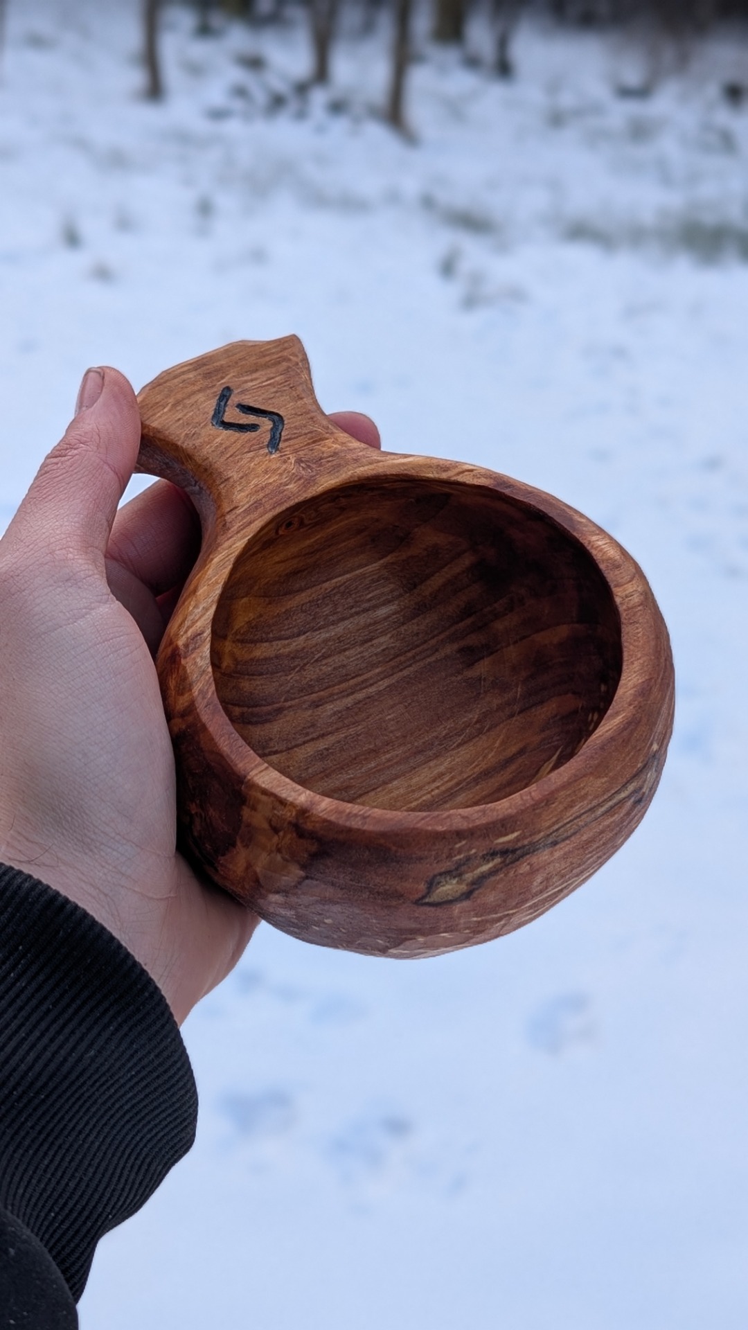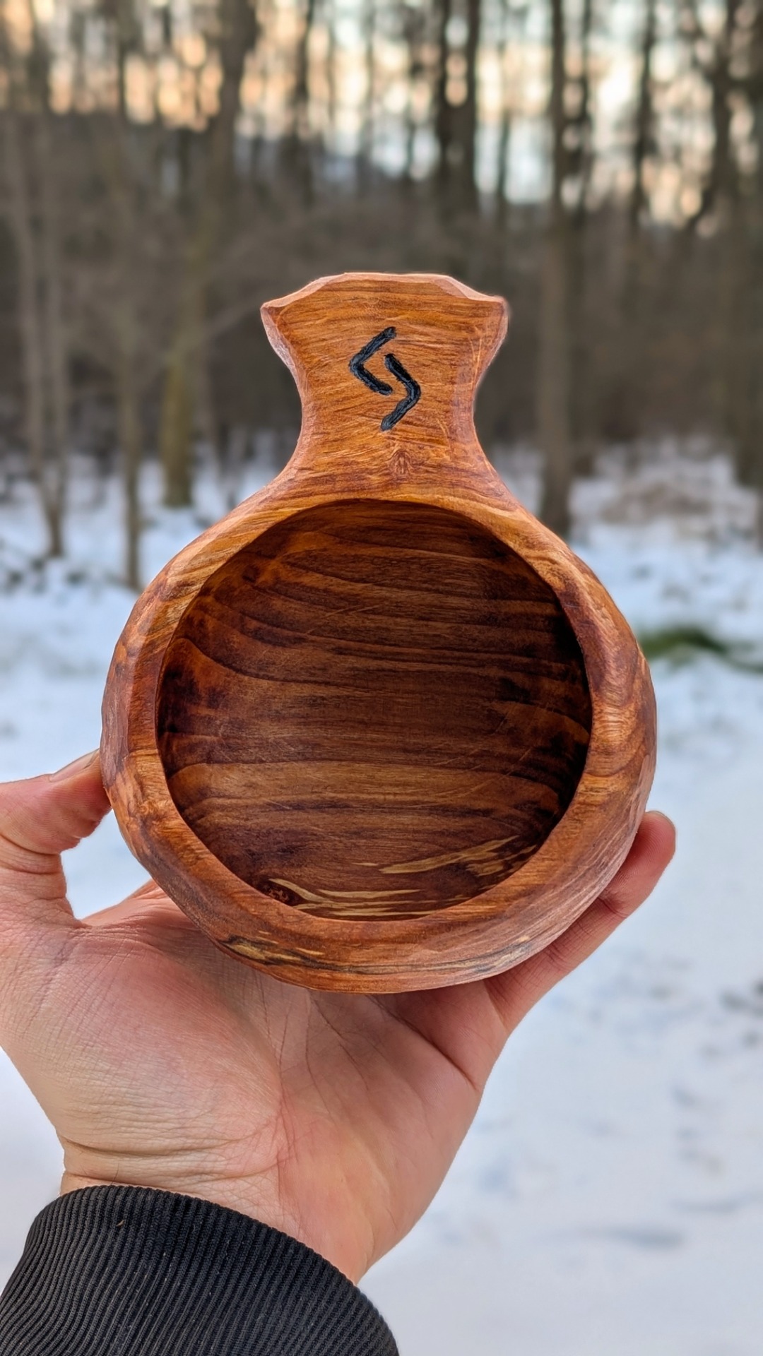 Každý kus nese přirozenou kresbu dřeva, drobné nepravidelnosti a stopu ruky. Tvar je navržen tak, aby kuksa přirozeně padla do dlaně. Ať už si z ní vychutnáte ranní kávu, čaj nebo doušek vody na cestách, vždy budete držet v ruce kus poctivého řemesla.